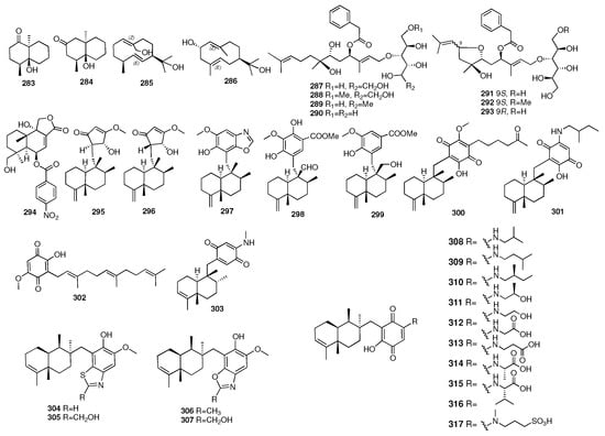 Chemical structures of compounds 283–317.
