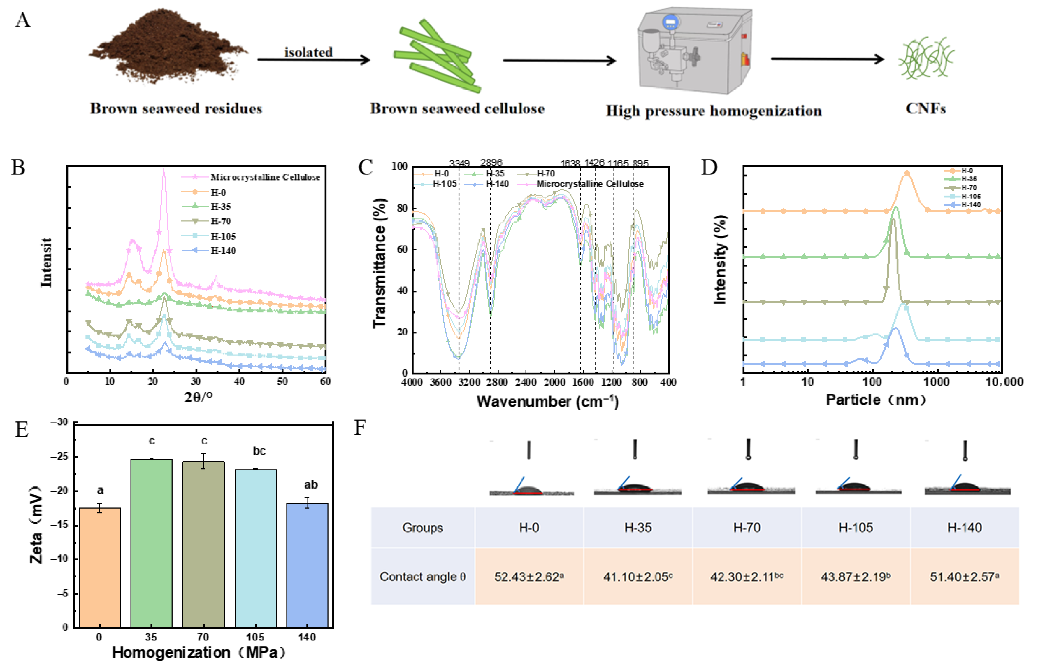 2.3. Effect of Homogenization Pressure on Chemical Construction of Brown Seaweed Cellulose