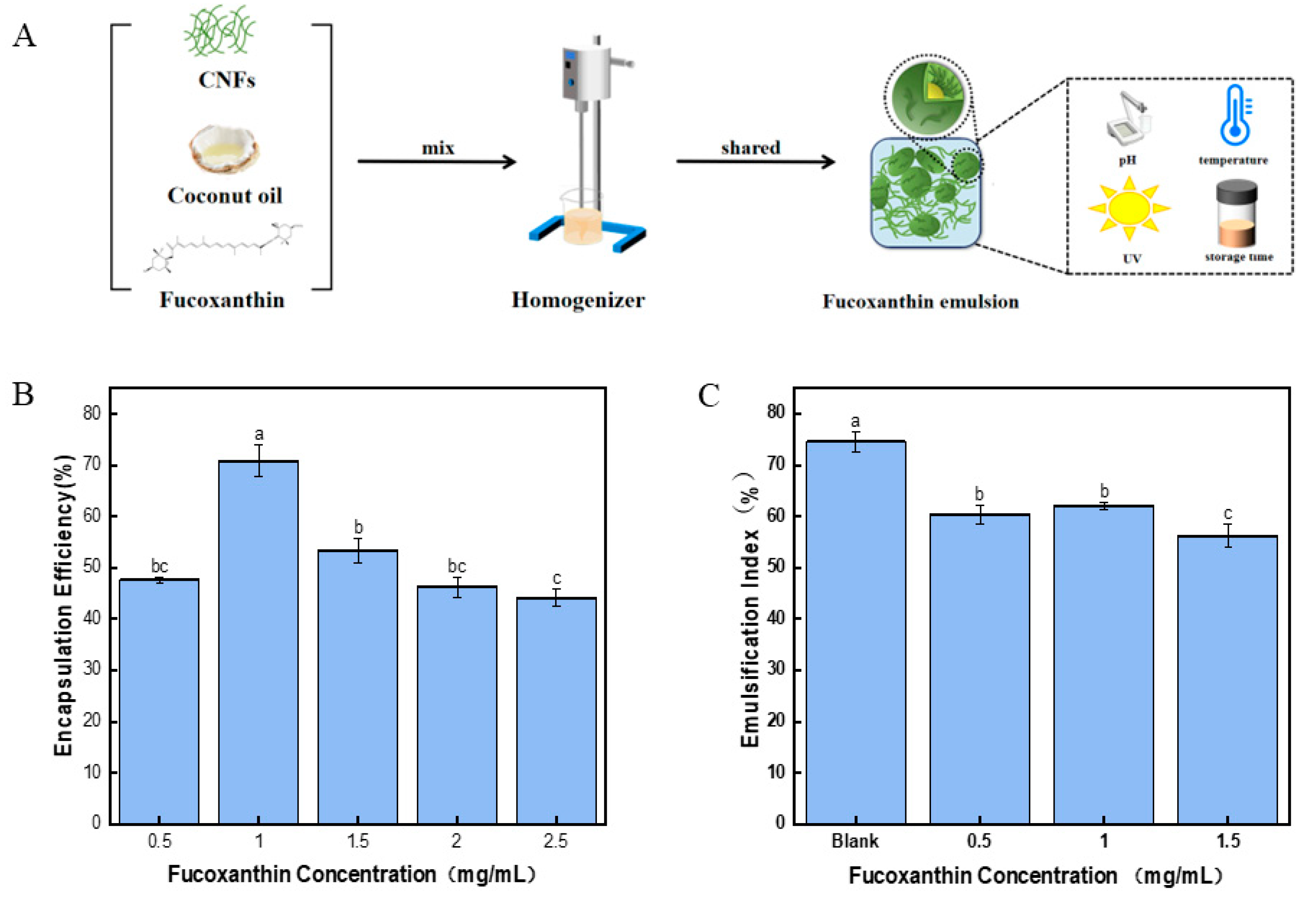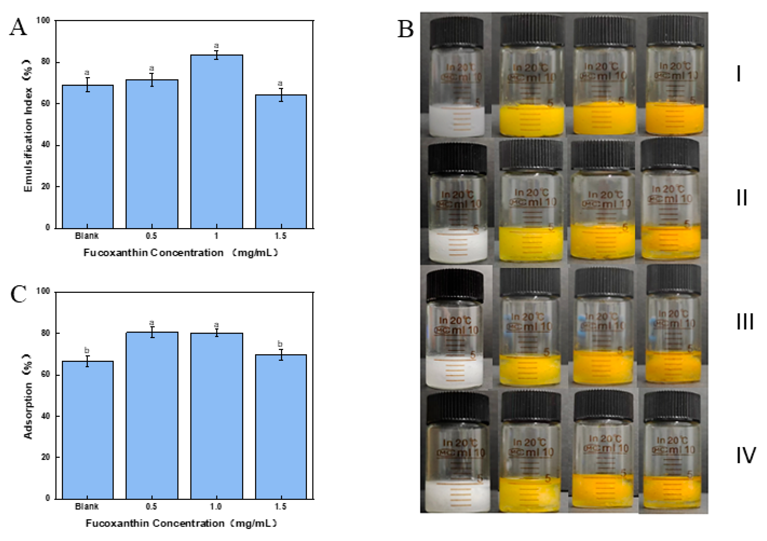 2.9. Encapsulation Efficiency of Fucoxanthin in Pickering Emulsion