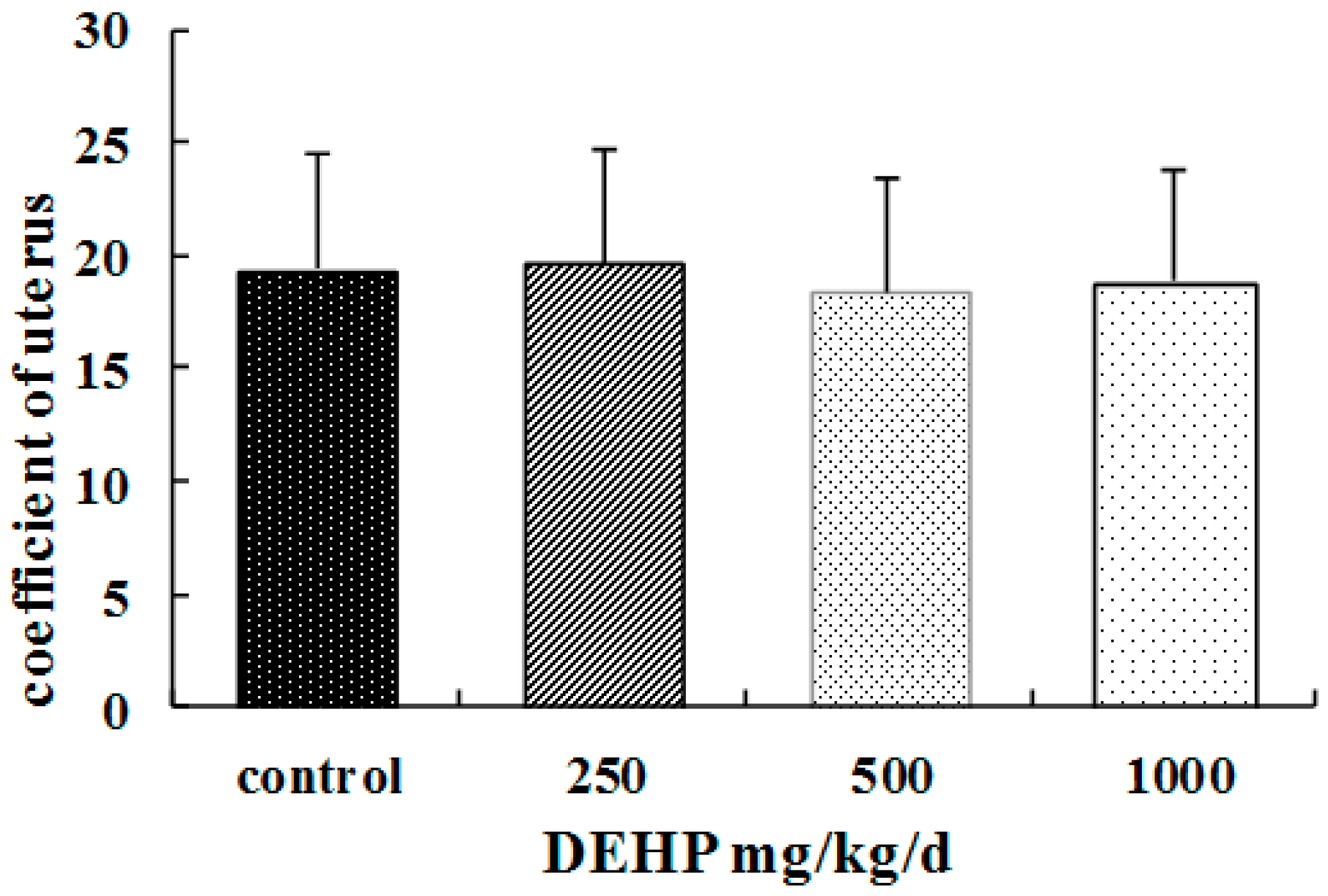 - Compared with the control group, there were no significant differences of the coefficients in uteruses of the rats treated with DEHP (p > 0.05, Figure 2).