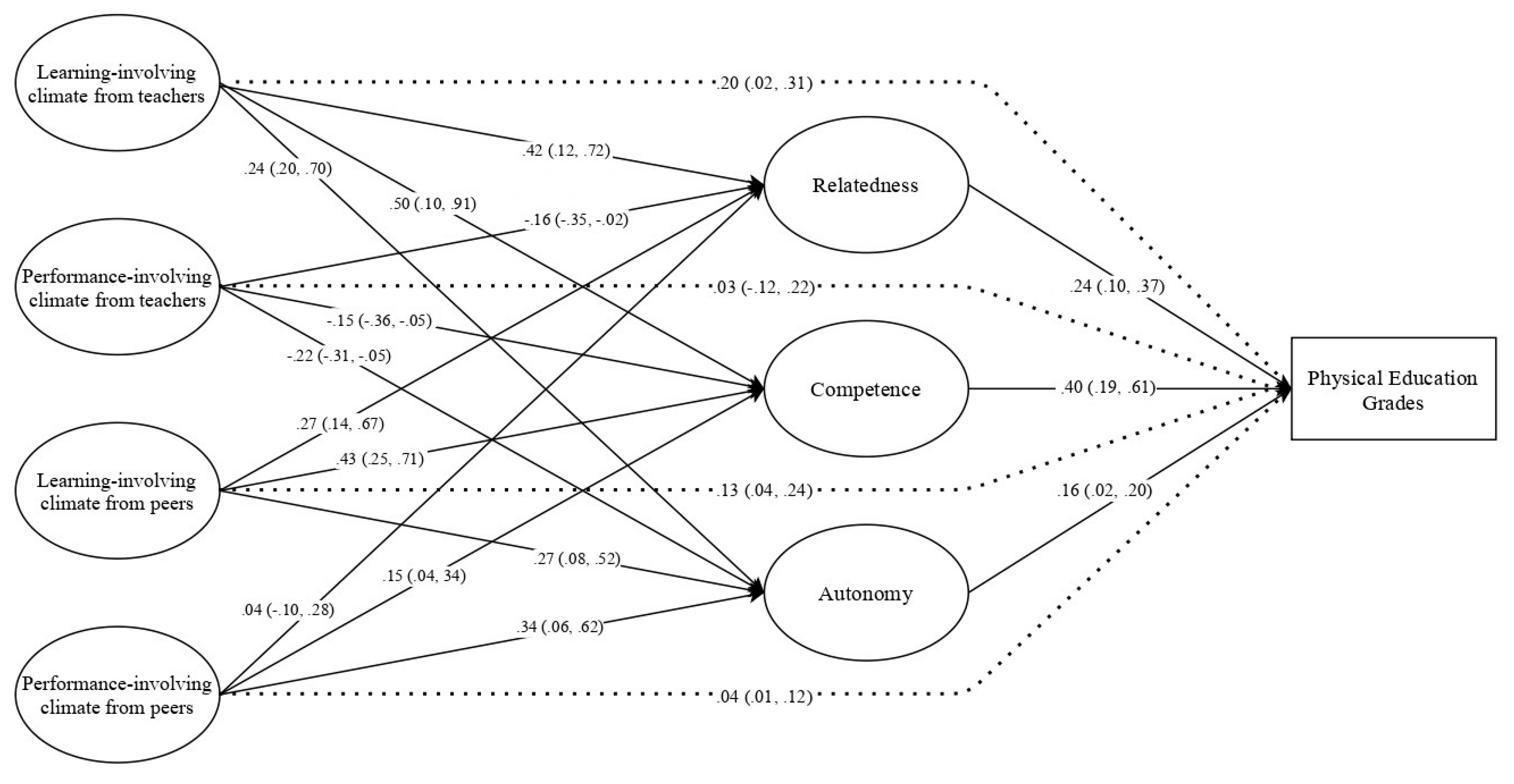 The Relationship between Teachers and Peers’ Motivational Climates, Needs Satisfaction, and Physical Education Grades: An AGT and SDT Approach