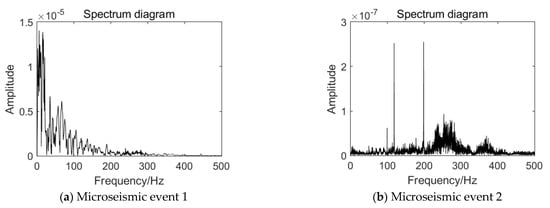 Through Fourier transform of the microseismic signal, the spectrum of high-energy event and events before the high-energy event are obtained, as shown in Figure 5.
