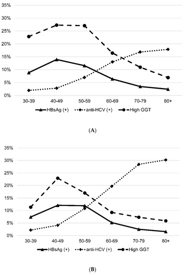 3.2. Prevalence of HBsAg, Anti-HCV and High GGT Level