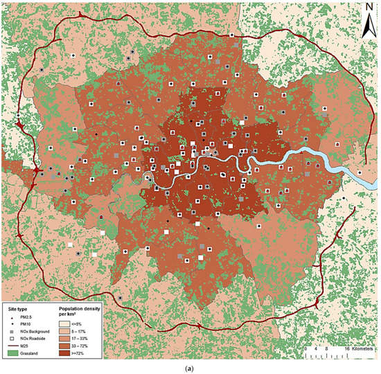 Publicly archived datasets analyzed in this study: Census 2011 data; https://data.london.gov.uk/dataset/2011-census-demography (accessed on 1 March 2017); London Air Quality Network (LAQN). King’s College, London. Available online: http://www.londonair.org.uk/ (accessed on 1 March 2017); London Datastore (accessed on 13 April 2020). Available online: https://data.london.gov.uk/dataset/lsoa-atlas (accessed on 18 November 2016); Air Quality England (AQE). Ricardo Energy and Environment. Available online: http://www.airqualityengland.co.uk/ Automatic Urban and Rural Network (AURN) (accessed on 1 March 2017). Data Archive: Available online: https://uk-air.defra.gov.uk (accessed on 6 December 2016); Land Cover Map. Available online: http://www.ukso.org/static-maps/land-cover-map.html (accessed on 29 November 2016); UK Meteorological Office, Available online: https://www.metoffice.gov.uk/research/climate/maps-and-data/historic-station-data (accessed on 21 November 2016); Department of Transport in the United Kingdom, Available online: https://data.gov.uk/dataset/d1f9e79f-d9db-44d0-b7b1-41c216fe5df6/national-public-transport-data-repository-nptdr (accessed on 4 August 2017); EMEP European emissions (accessed on 15 June 2016), Available online: https://www.ceip.at/; CERC, ADMS Roads v4 User Guide. (accessed on 15 December 2016) Available online: http://www.cerc.co.uk/environmental-software/assets/data/doc_userguides/CERC_ADMS-Roads4.0_User_Guide.pdf (accessed on 15 December 2016); Greater London Authority (GLA). The London Atmospheric Emissions Inventory 2013. Available online: https://data.london.gov.uk/dataset/london-atmospheric-emissions-inventory-2013 (accessed on 6 December 2016).