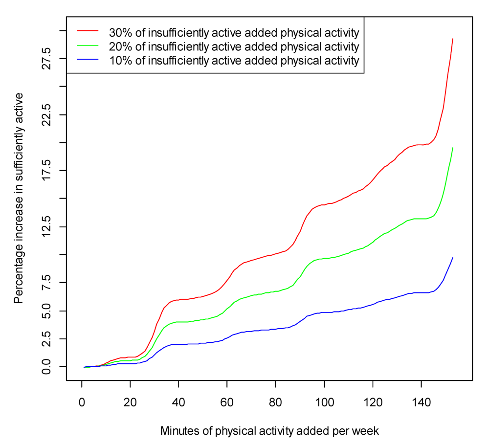 Population increase in the proportion of NSW adults who are sufficiently physically active by increases in minutes of physical activity and the percent uptake by those currently inactive.