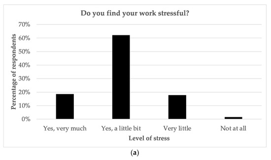 Survey responses regarding (a) levels of stress; (b) levels of perceived burnout.