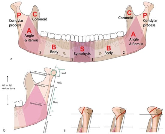 - Neff, A.; Cornelius, C.P.; Rasse, M.; et al. The comprehensive AOCMF classification system: Condylar process fractures—Level 3 tutorial. Craniomaxillofac Trauma Reconstruction 2014, 7 (Suppl 1), S44–S58. [Google Scholar] [CrossRef] [PubMed]