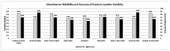 Level 2—Interobserver reliability and accuracy of fracture location in the mandibular regions.