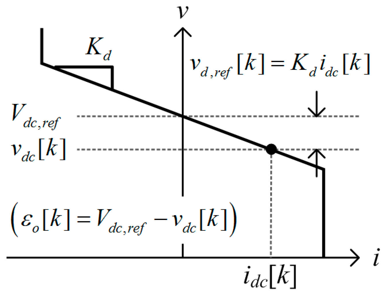 where Vdc,ref is the nominal dc bus voltage (i.e., 380 V), and vd,ref[k] is the droop voltage given as