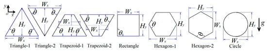 Schematics of the triangular, trapezoidal, rectangular, hexagonal, and circular cells.