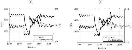 The control diagram is shown in Figure 10. We monitor the indoor temperature and total load and when the values exceed the alarm values, we repeat the process. The proposed DR scheme achieves load control using infrequent communications and few control signals, whereas the queuing method requires frequent communication with and control of each air conditioner; the higher the requirement for load control accuracy, the stricter the demand for communication and control is.