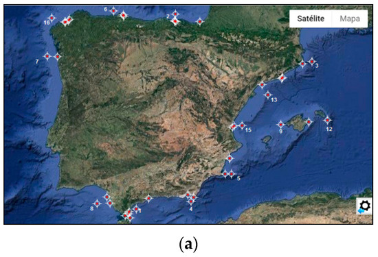 - Ministerio de Fomento. Puertos del Estado. Banco de Datos. Redes de Medida. Available online: www.puertos.es (accessed on 6 July 2018).