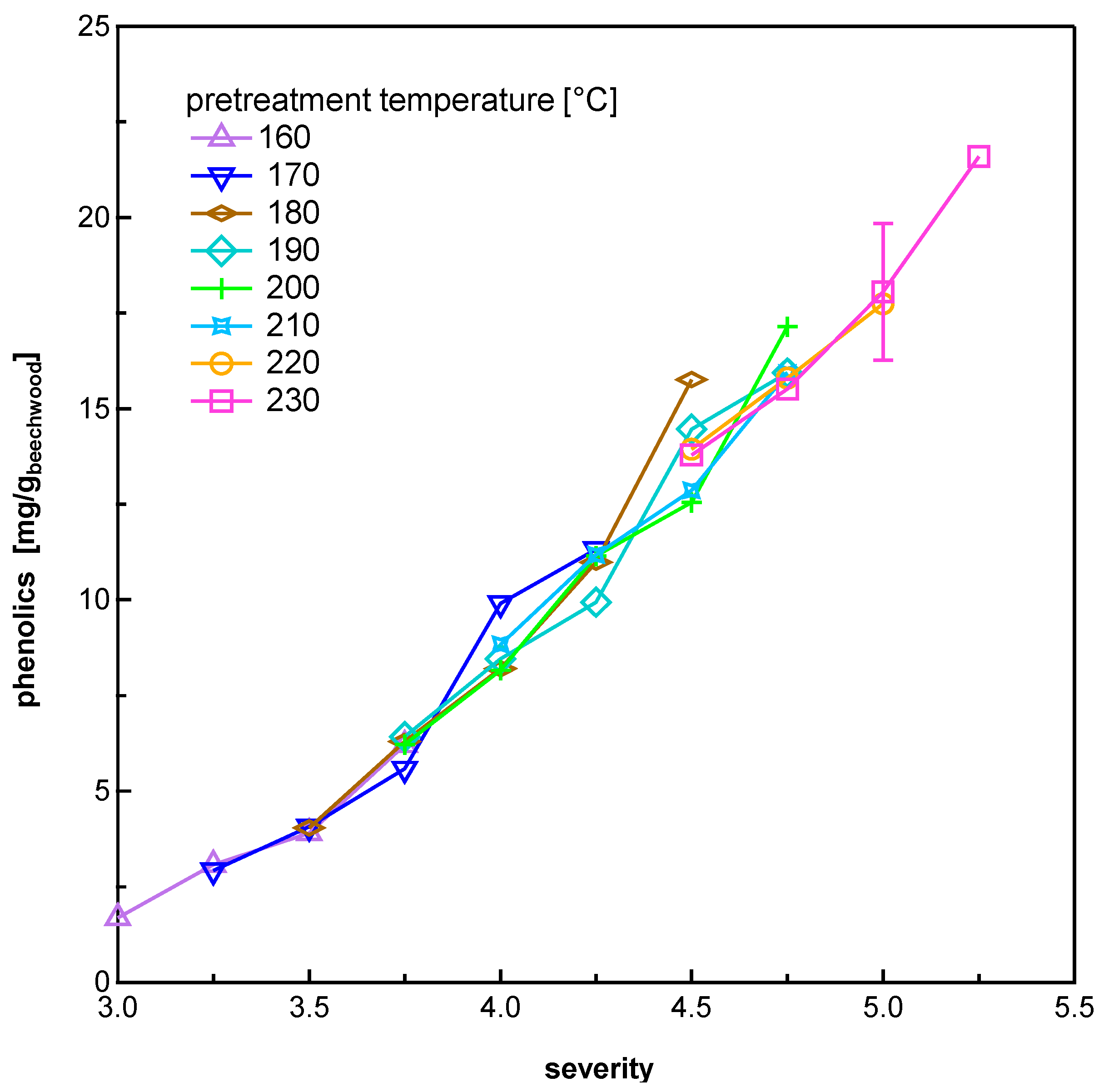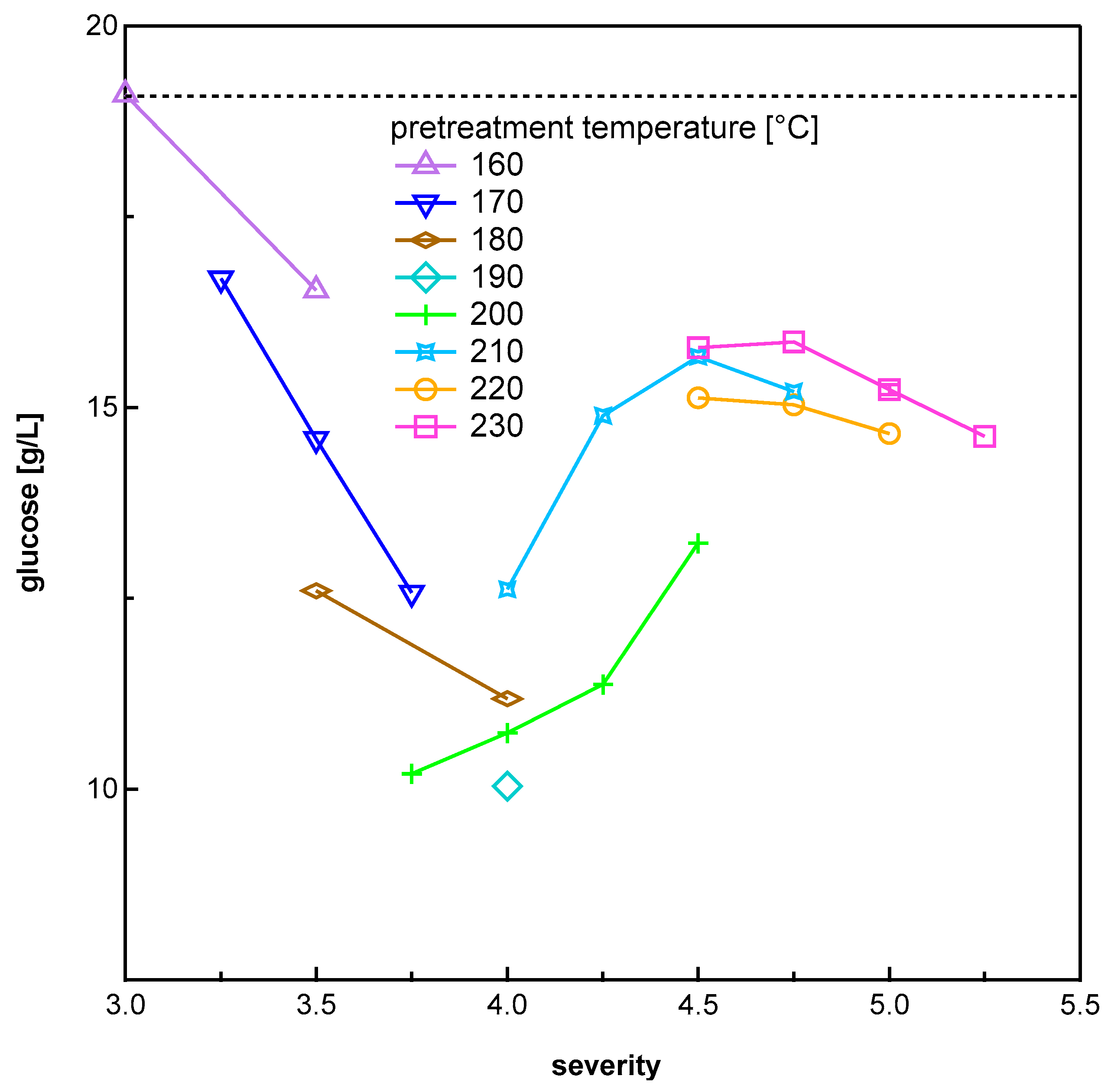 | Temperature [°C] | Pretreatment Severity log R0 | |||||||||