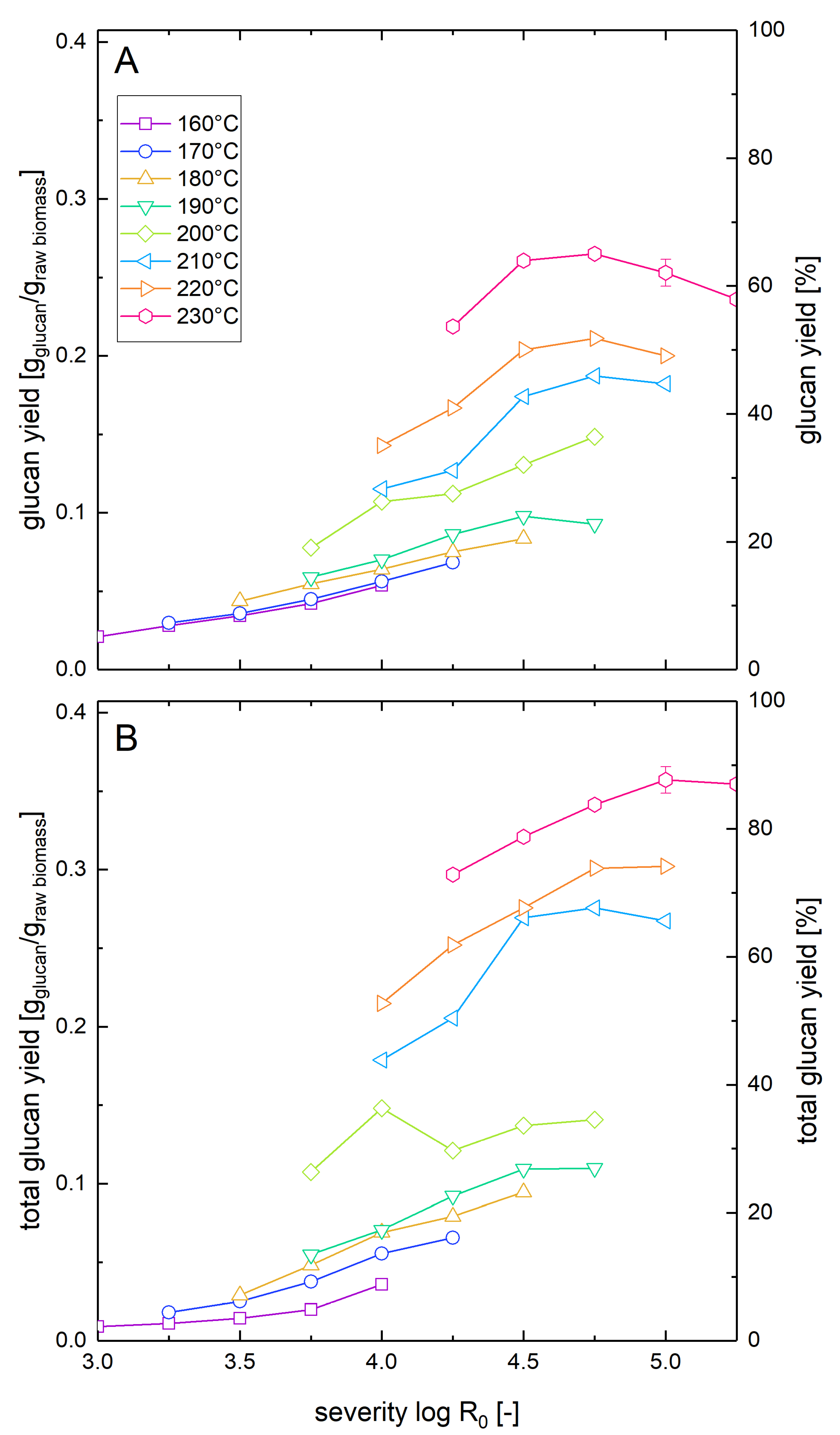 | Temperature [°C] | Pretreatment Severity log R0 | |||||||||