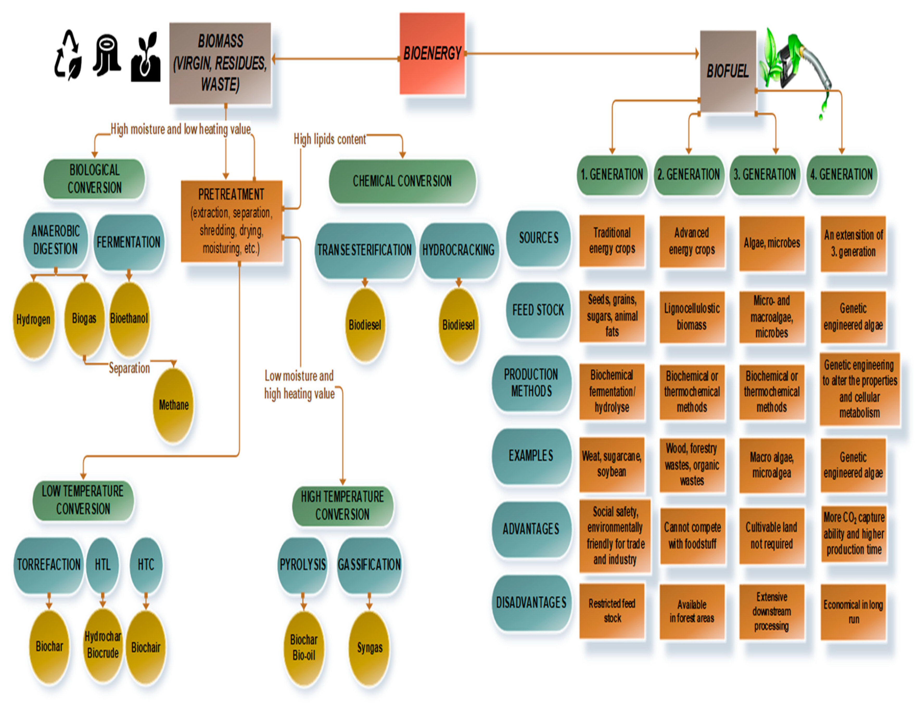 - Biochemical processes—some forms of biomass containing a large amount of water are used in the fermentation process, where the product of biomass degradation is alcohol used for the production of biofuels. Methane fermentation processes, the product of which is biogas (a mixture of methane and carbon dioxide) are also included in these technologies. For energy purposes, animal feces, food processing waste, municipal waste at landfills and sewage sludge are used in the fermentation process.