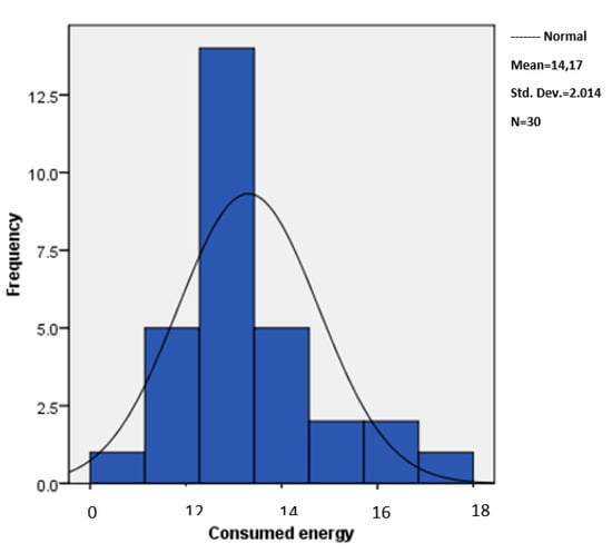 Figure 5 shows the probability density function of the consumed electrical energy of PV systems, which has a normal Gauss distribution. That means that the electricity consumption is almost constant each month. The fluctuations are small and can be explained by hardware factors. The obtained analysis results allow us to reliably determine the PEF values.