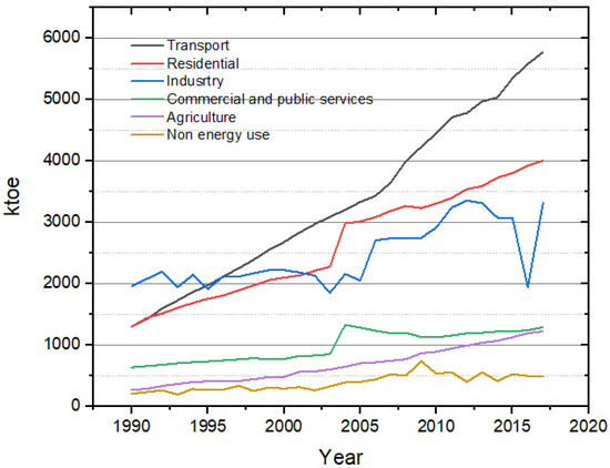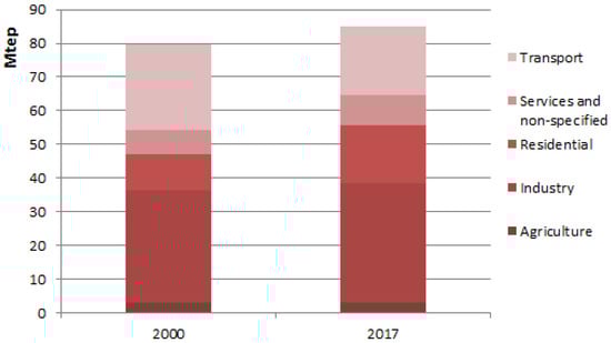 Final energy consumption by sectors in Spain: 2000–2017 comparison [].