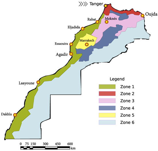 Climatic zones for current thermal building regulation in Morocco (Adapted from []).