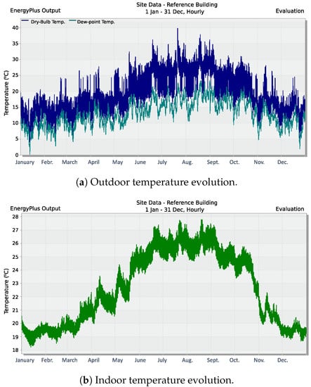 Temperature evolution for the reference building. Tangier (Morocco)—Scenario 1.