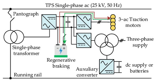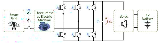 By analyzing all these aspects in a broad perspective, power electronics systems are recognized as a common denominator [], providing new challenges between sustainable development and scientific development []. Several review papers can be found in the literature, but focusing only on specific topics of power electronics for electric mobility, e.g., in [] are presented advancements and challenges for electric mobility, addressing the battery chargers, wireless solutions and with a special focus on energy storage technologies; in [,] are presented extended reviews about the state-of-the-art of battery technologies and respective management systems; in [] is presented a review of on-board EVBC, but only in the perspective of integrated systems; and in [] is also presented a review focusing only on EVBC. In [] are presented global trends of EVBCs, but only focusing on the fast battery charging; in [,] are presented reviews of technologies for electric mobility, but only focusing on wireless battery charging systems; and in [] is presented a review exclusively about electric motor drivelines in commercial EVs. Throughout the paper, when relevant, other references for review papers are also introduced. By contrast with the other review papers, this paper aims to provide an overview of the variety of technologies, covering: (i) the aggregation and accurate explanation, in a single paper, of the main technologies and opportunities of electric mobility; (ii) a broad review of power electronics topologies and architectures for electric mobility (including on-board and off-board EVBC, stationary and dynamic inductive wireless EVBC, unified traction and EVBC, operation modes for supporting the power grid, and innovative solutions for electrified railway systems); (iii) the framework of power electronics systems with future perspectives in the scope of electric mobility.