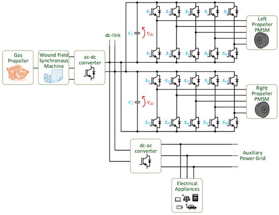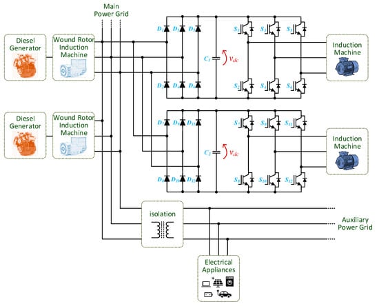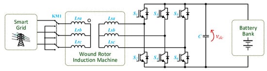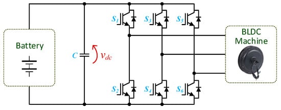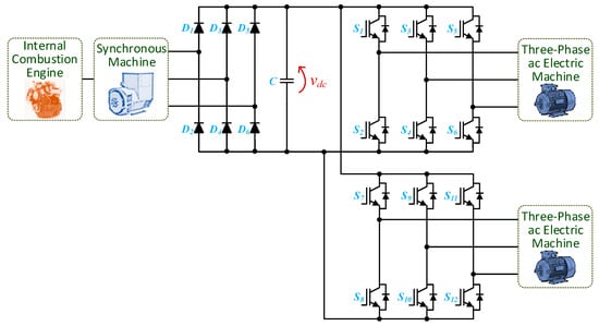 To overcome this concern, electric mobility is pointed out as a prominent answer to diminish CO2 emissions, as well as to contribute to the sustainability of the transportation sector []. A global review focused on electric mobility in a smart grid environment is presented in [], where future perspectives regarding industrial information technologies are also established. A broad investigation concerning the electrification of the transportation sector is presented in [], where key topics are addressed, namely electric machines, powertrain architectures, power electronics technologies, and energy storage systems. A comprehensive overview of the status and issues of electric mobility is presented in [,], highlighting and exploring its challenges and opportunities. Despite the positive industry indicators, the full adoption of electric mobility is facing some hurdles, as investigated in []. Indeed, the shifting to electric mobility is already underway, with several electric vehicle (EV) models commercially available worldwide, embedding diverse scientific and technological developments, as presented in [,,]. Moreover, electric mobility is also underway for military use, either in standalone applications [] or in association with military-based microgrid systems, as discussed in [].