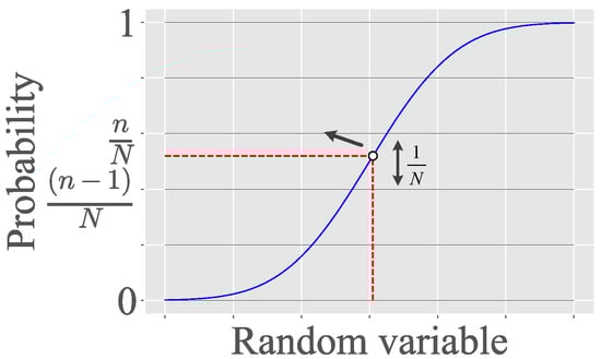 where Ym is the probability of Xm and is scaled from 0 to 1, and Fm is the probability cumulative function of Xm. The cumulative curve is divided into N equal intervals and only one sampling value should be selected randomly in each interval, which is illustrated in Figure 1.
