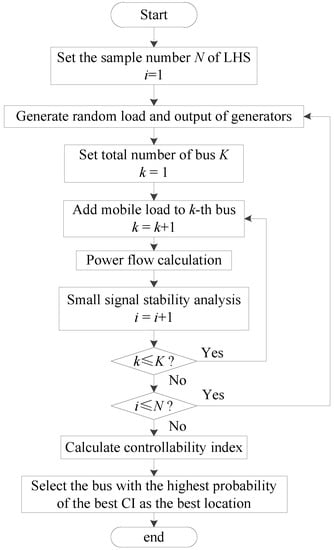 MC simulation is a statistical test method of parameter estimation when the sample size is large. MC has been widely used in power systems such as reliability assessment, and the number of tests has nothing to do with the scale of the system. MC is used to produce a great deal of random computational scenarios in accordance with the distribution density of the random sources []. Recent literature has used MC simulation for SSSA of power systems with small sets of random input variables [,]. Latin hypercube sampling (LHS) was first proposed by McKay et al. [] in 1979. It is an efficient stratified sampling technique and it can obtain an accurate result with a much smaller sample size than simple random sampling (SRS) [].