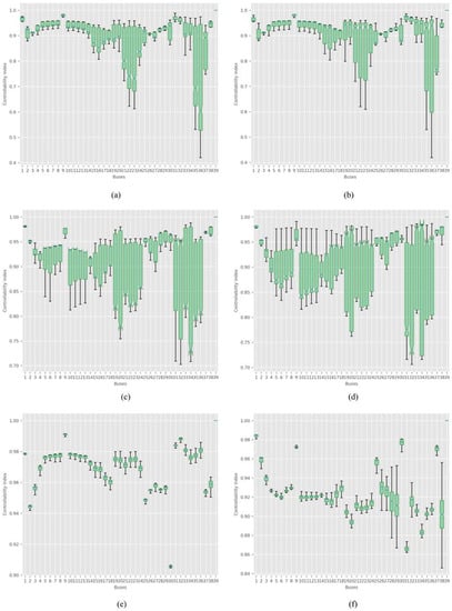 Box plot of controllability index of LFO modes. (a) OM3; (b) OM4; (c) OM5; (d) OM6; (e) OM7; (f) OM8.