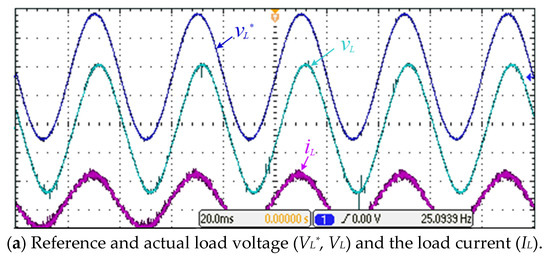 Simulation results of the proposed 7-level inverter for house loads voltage control (2 kW). (a) Load reference and actual voltages, (b) Load voltage and current.