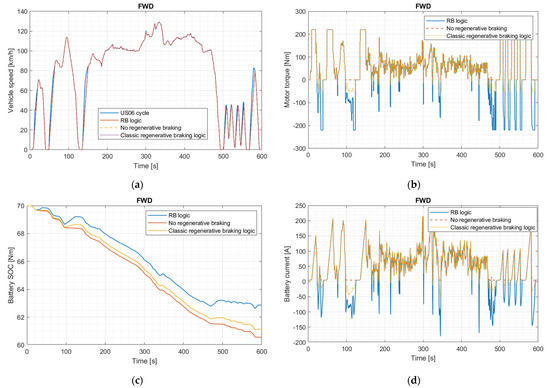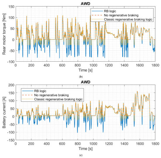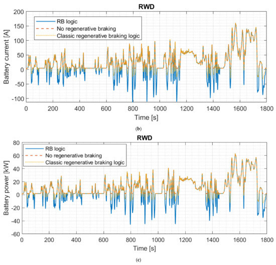 In [16], the regenerative braking strategy takes into account the ideal braking torque distribution, but the characteristics of the battery pack are not considered, unlike in the RB logic proposed in this paper.
