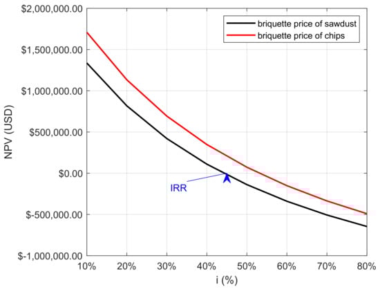 The economic viability of briquette production can be reached through an economic study that is based mainly on four elements, such as the type of biomass used, investment capital, human resource skills and the type of equipment used []. The economic analysis is performed by deploying certain basic economic indicators of net present value (NPV), internal rate of return (IRR) and payback period (PBP) [].