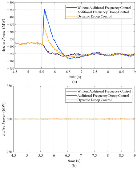 - The proposed strategies could be effective in various system operation scenarios. The different simulation results all demonstrated that through the implementation of dynamic droop control, power lines with significant power margins were able to accommodate more unbalanced power, resulting in a reduction in frequency fluctuations caused by disturbances and an enhancement in system stability.