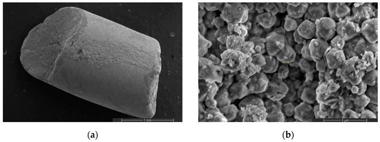 Silica gel (SiO2 · nH2O) is the most commonly used adsorbent in adsorption chillers. It is an amorphous and synthetic silica derived from colloidal silica combined with particles of hydrated SiO4 [6]. The structure of silica gel consists of spherical particles ranging in size from 2 to 20 nm [92]. The widespread use of silica gel in adsorption technologies is due to the combination of its relatively good sorption properties with good market availability and low price. Silica gel can form a working pair with water. Furthermore, it can be used in devices with desalination function. Silica gels are characterised by good mechanical properties, which are essential considering the durability of the preservation of the original properties, but they are poor heat conductors as their thermal conductivity coefficient is most often in the range 0.13–0.17 W m−1 K−1 [93]. In addition, they are thermally stable and ensure the possibility of regeneration at low temperatures, ranging from 55 to 140 °C [8]. Regeneration of an adsorption chiller bed filled with silica gel occurs at temperatures below 90 °C [94]. The specific surface area of silica gels is typically between 100 and 1000 m2/g [6]. There are different types of silica gels classified according to the size of the pores. These include type A, type B, type RD and type 3A silica gel [91,95]. The basic properties of selected commercially available silica gels are shown in Table 1. Silica gel is most commonly used in the form of irregularly shaped grains or sphere-like grains with a size of 1–4 mm [56]. Figure 2 shows SEM (scanning electron microscope) images of typical silica gels used in adsorption chillers.
