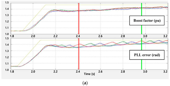 The boost factor K = 1.05 is changed to K = 1.47 during operation, as shown in Figure 8. The oscillation of 4 Hz due to the error in the internal PLL(Phase Locked Loop) controller occurs as in the steady state operation. This can be resolved through PLL controller gain correction in the future.