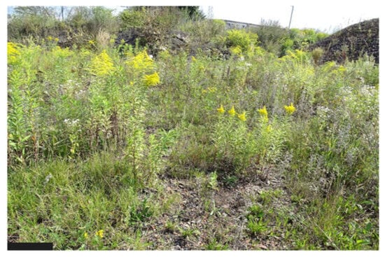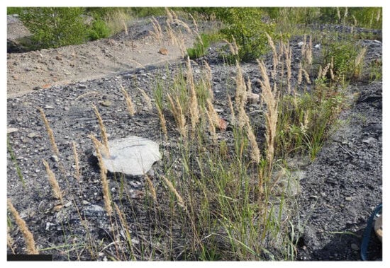 The research conducted over hundreds of post-coal mine heaps has revealed that the herbaceous spontaneous vegetation types can be characterized by the abundant occurrence of one dominant species, often accompanied by single individuals of numerous other species [,,,,,,]. The mineral post-black coal mining sites provide a stony gravel soil substrate for the colonizing organisms [,,]. The vegetation species composition dynamics, including transformation and development on mineral resource excavation sites, influences the soil biomass biochemistry, SOM, nutrient cycling, soil nitrogen loss, and enzyme activities [,,,,,,,,] and the resistance of the habitat and soil substrate to environmental stresses [].
