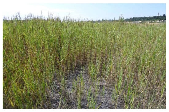 The plant community patches representing the distinguished vegetation types are primarily divided by the second axis. There are some vegetation types that are present only on the right side of the dissimilarity space. The patches of Tripleurospermum inodorum, Tussilago farfara, Lotus corniculatus, and most of the Phragmites australis (Figure 9) plant communities are on the right part of the matrix. On the left side are the Solidago gigantea and Poa compressa (Figure 10) plant community patches. In the center of the matrix, though more on the left side, are the Centaurea rhenana, Melilotus albus, and Chamaenerion palustre patches. Along the vertical axis are the Daucus carota, Calamagrostis epigejos, and Festuca group patches. The only plant community patches that are limited to the upper part, above the horizontal axis, are the Eupatorium cannabinum community patches.