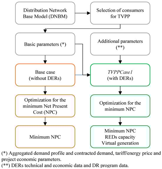 Previous works [,,] inspired the present study, which proposes a methodology for TVPPs sizing and simulating their optimal economic dispatch and economic attractiveness, with a focus on the entrepreneur’s point of view. In addition, we propose a system to evaluate the potential benefits and impacts of a TVPP on a DS, TS, or both, considering the interface between the DSO and TSO. The system also considers possible synergies that allow the DSO to capture benefits for the power system in its relationship with the TVPPs, which can be offered to the TSO in the form of network services, for example, through DR via incentives for the consumers participating in TVPP.