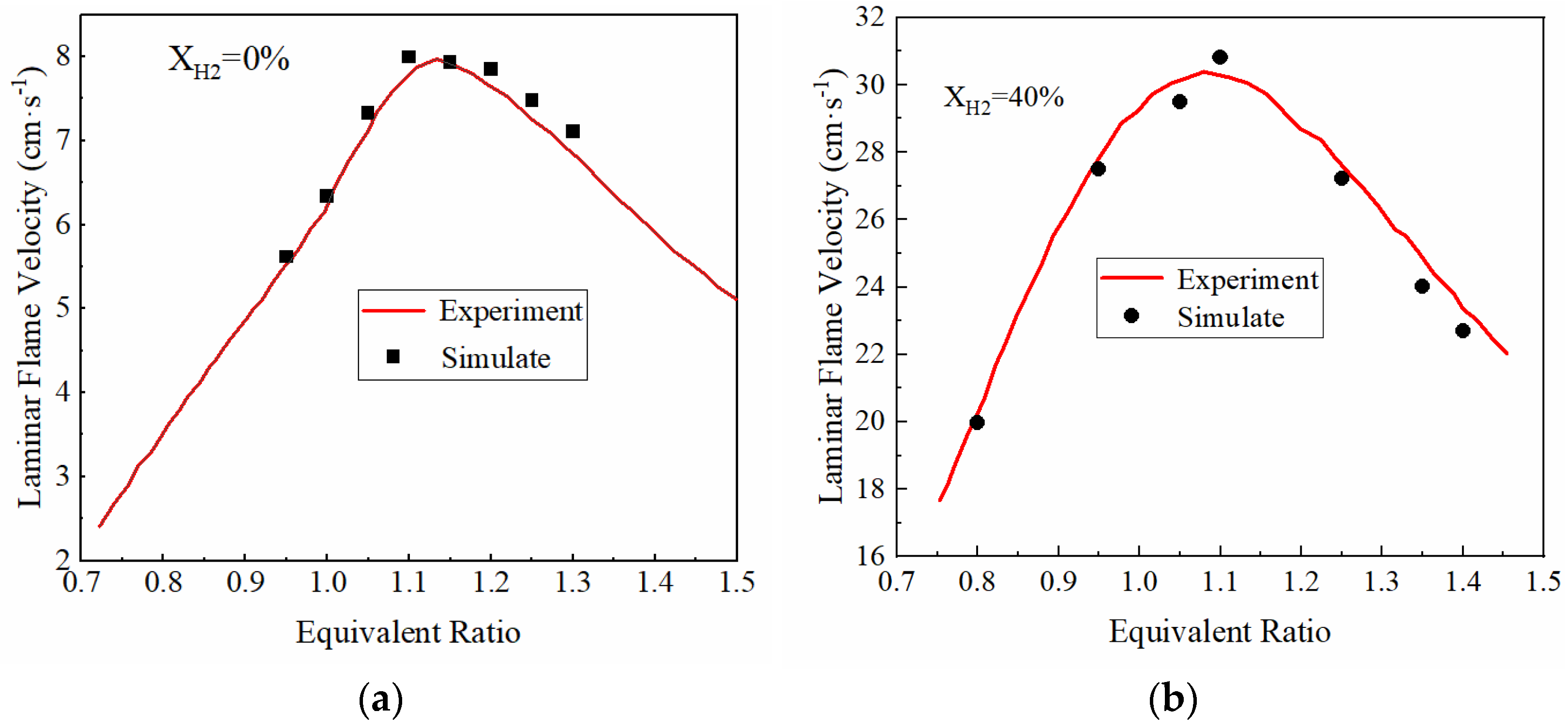 2.2. Laminar Flame Velocity Model Correction and Verification
