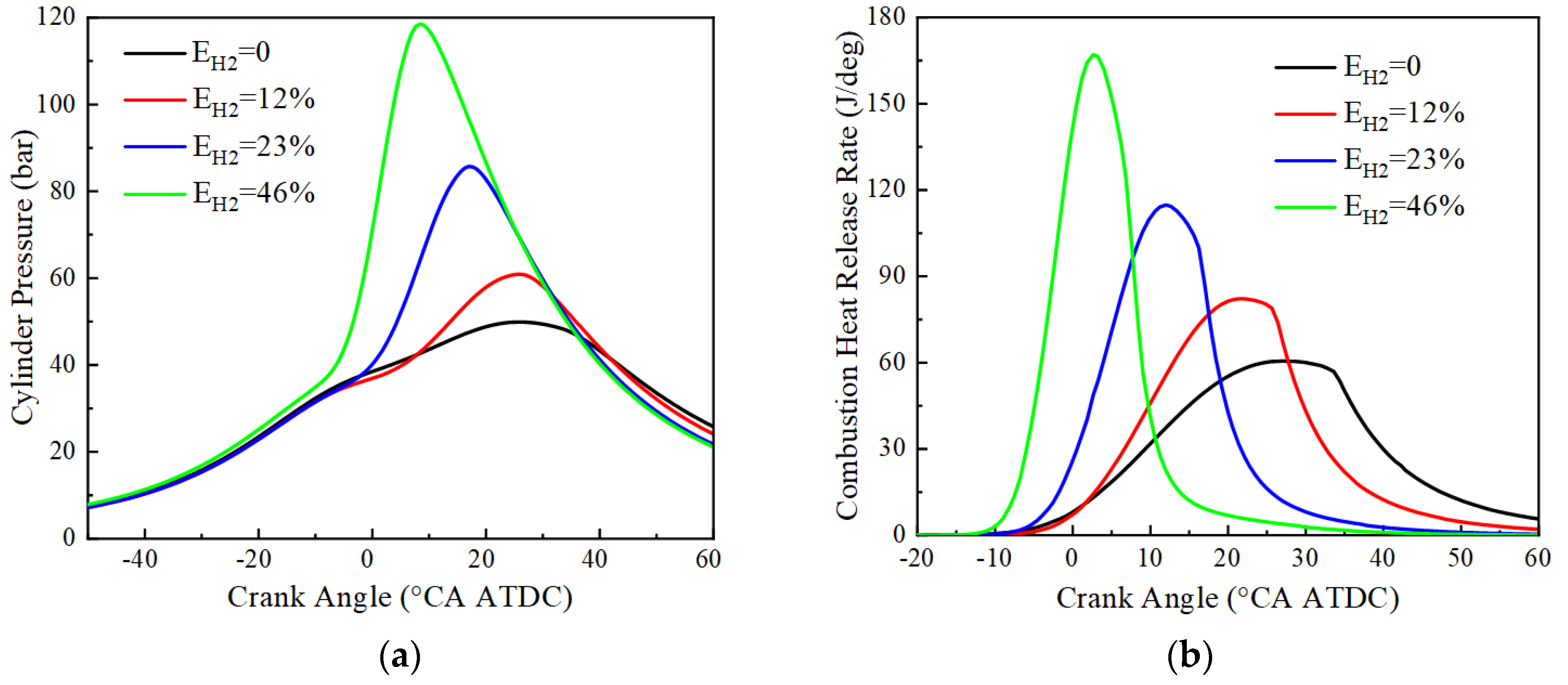 3.2. Effect of Hydrogen Blending Ratio on the Combustion Characteristics
