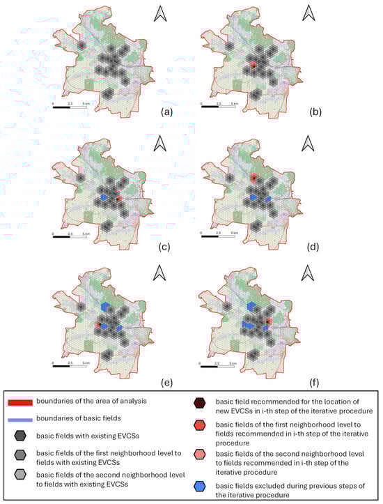 Step 5 contains an iterative procedure with the number of steps equal to , corresponding to the number of new locations of EVCSs to be determined. In each -th iteration, the following actions are performed: