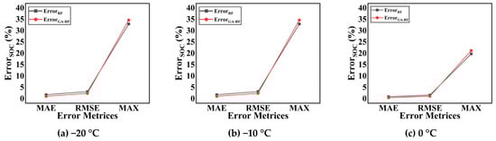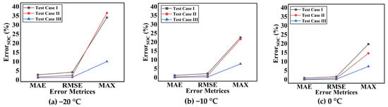 Graphical representation of error results for SOC estimation under varying ambient temperatures.