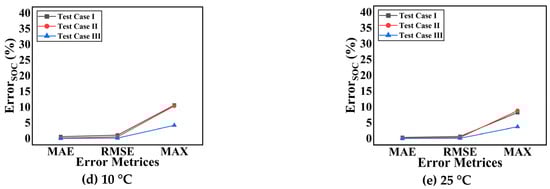 Figure 7 illustrates SOC estimation under varying input feature conditions. Additionally, the error results for this experiment are graphically represented in Figure 8.