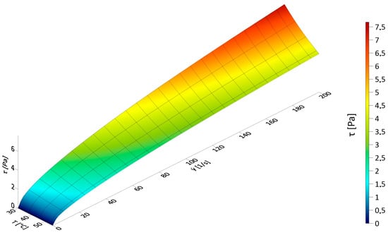 The flow threshold and viscosity values of the Bingham model are described by a linear function (Figure 8a,b). The following parameter values were obtained: aBτo = −0.024 and bBτo = 2.5411; fit parameter values: R2 = 0.9562, MAE = 0.0328 Pa and MAPE = 2.243% for the flow threshold; aBh = −0.0006 and bBh = 0.0471; and fit parameter values: R2 = 0.9672, MAE = 0.0012 N·s/m2 and MAPE = 5.892% for viscosity in the Bingham model (Table 4).
