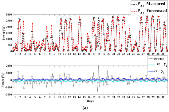 - Error evaluation. At each time step, the error between the measured and forecasted PAC is calculated as:The error is then compared against the tolerance band. If it falls outside this range, it is flagged as a high-cost imbalance, positive if , or negative if .