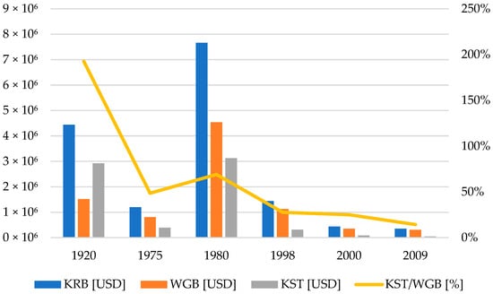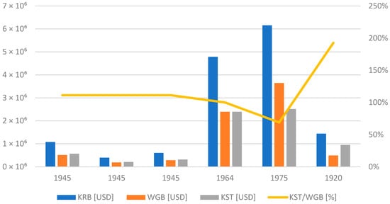 The aim is to rapidly assess the economic and environmental performance of buildings on an urban scale. This is achieved by comparing the estimated value of existing buildings (WGB) with the standard replacement value (KRB) for new buildings that meet current standards. While this method, derived from real estate valuation, does not provide a detailed cost estimation (design, materials, labour, and energy certification), it allows the KST indicator to be used as a key tool for setting economic policy and investment priorities. The final step (Stage V) involves comparing the economic and technical indicators (KST and WGB) with the ecological emission indicators (EEj) across the city zones.