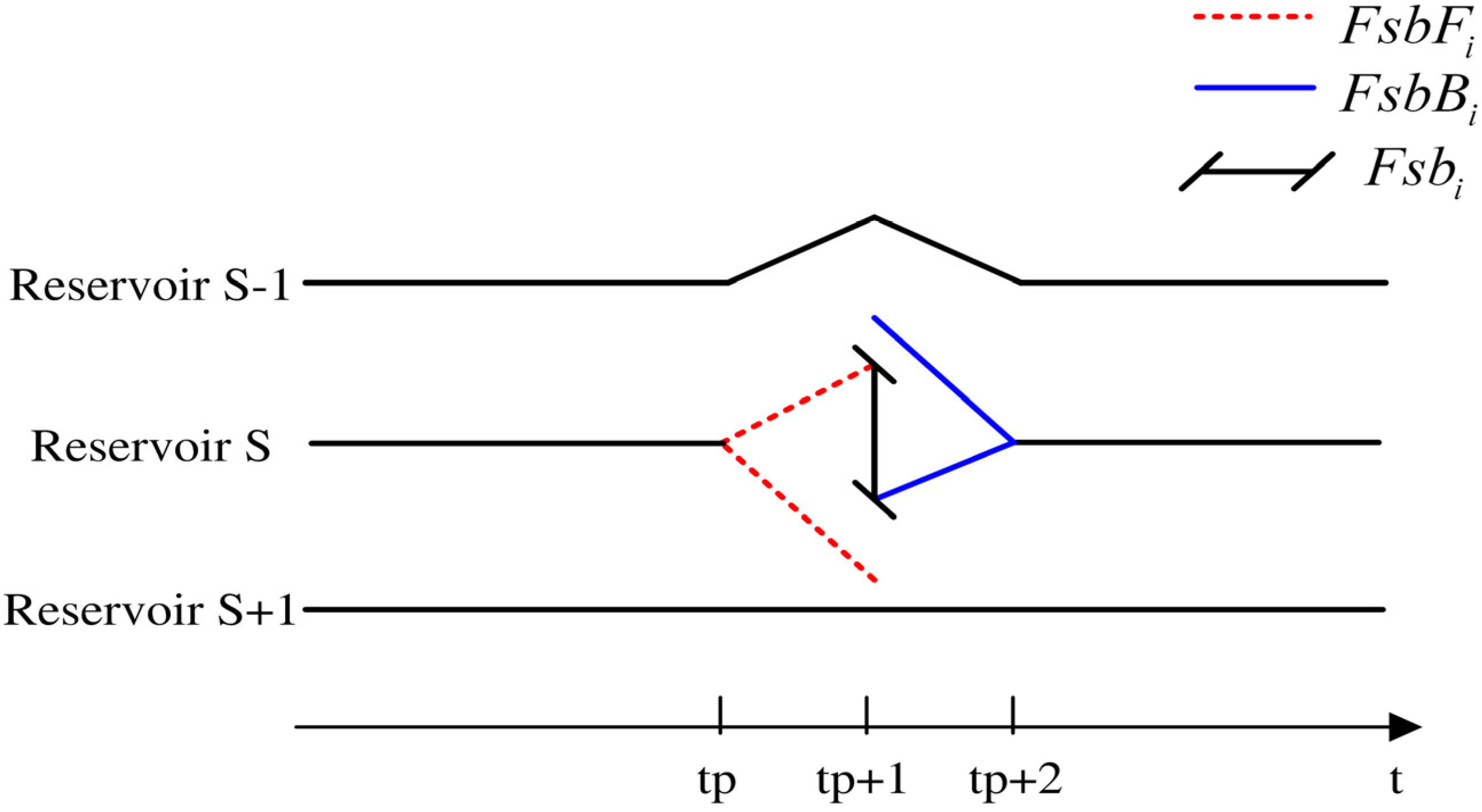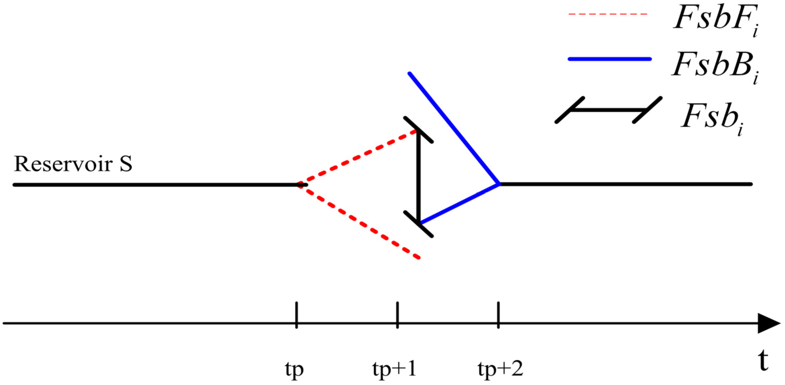As the inflow Qs,tp and Qs,tp+1 are known as estimated by flow forecasting, storage Vs,tp+1’s feasible region can be deduced from the water balance equation: