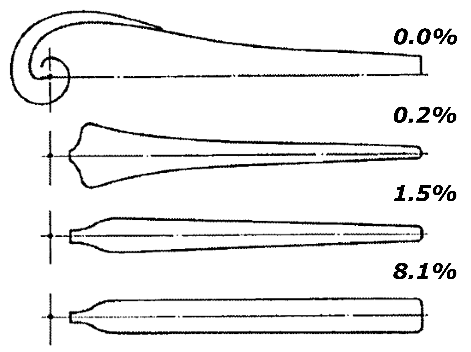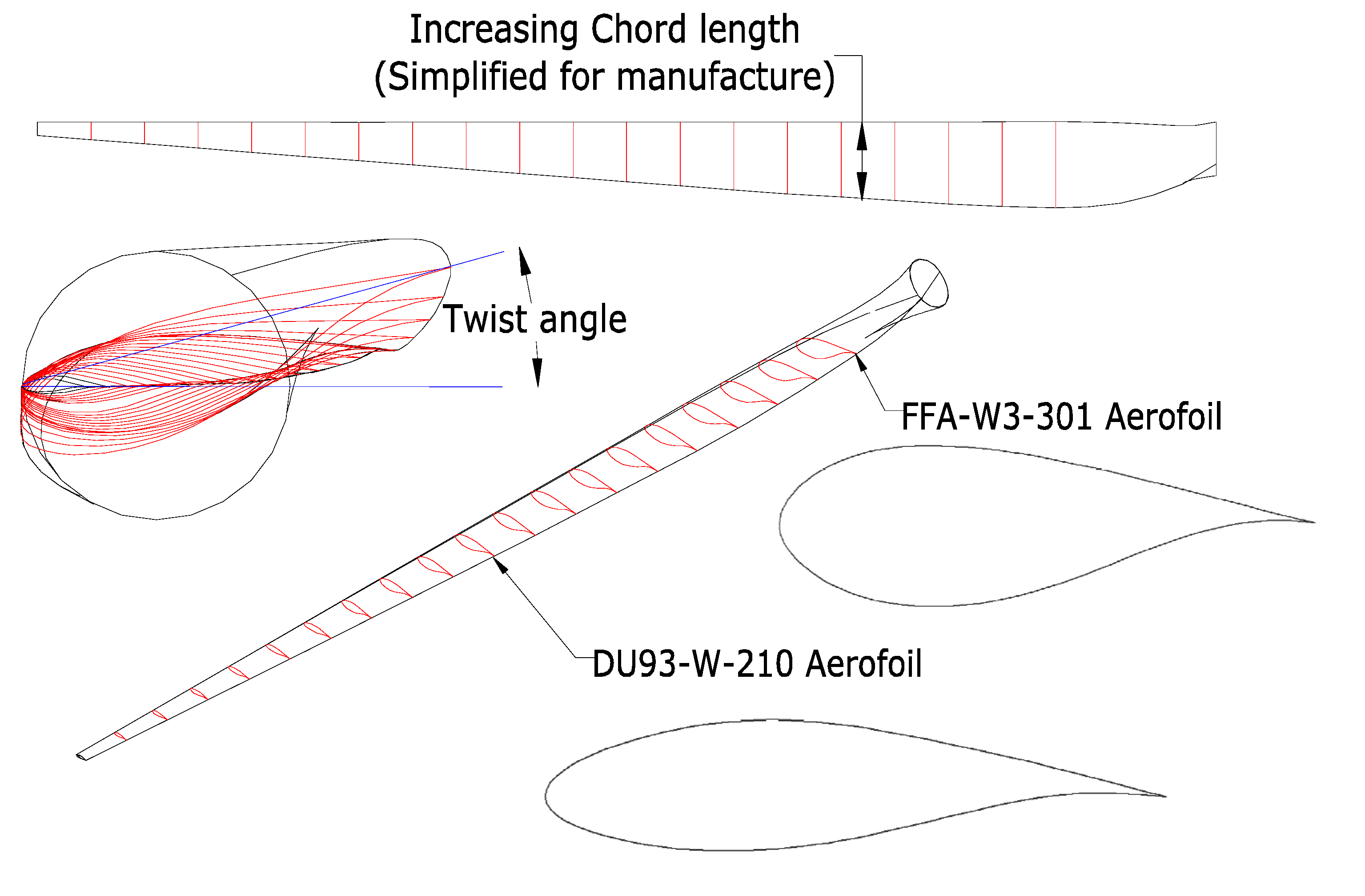 Generally, in practice the chord length is simplified to facilitate manufacture and which involves some linearization of the increasing chord length (Figure 4). The associated losses signify that simplification can be justified by a significant production cost saving.