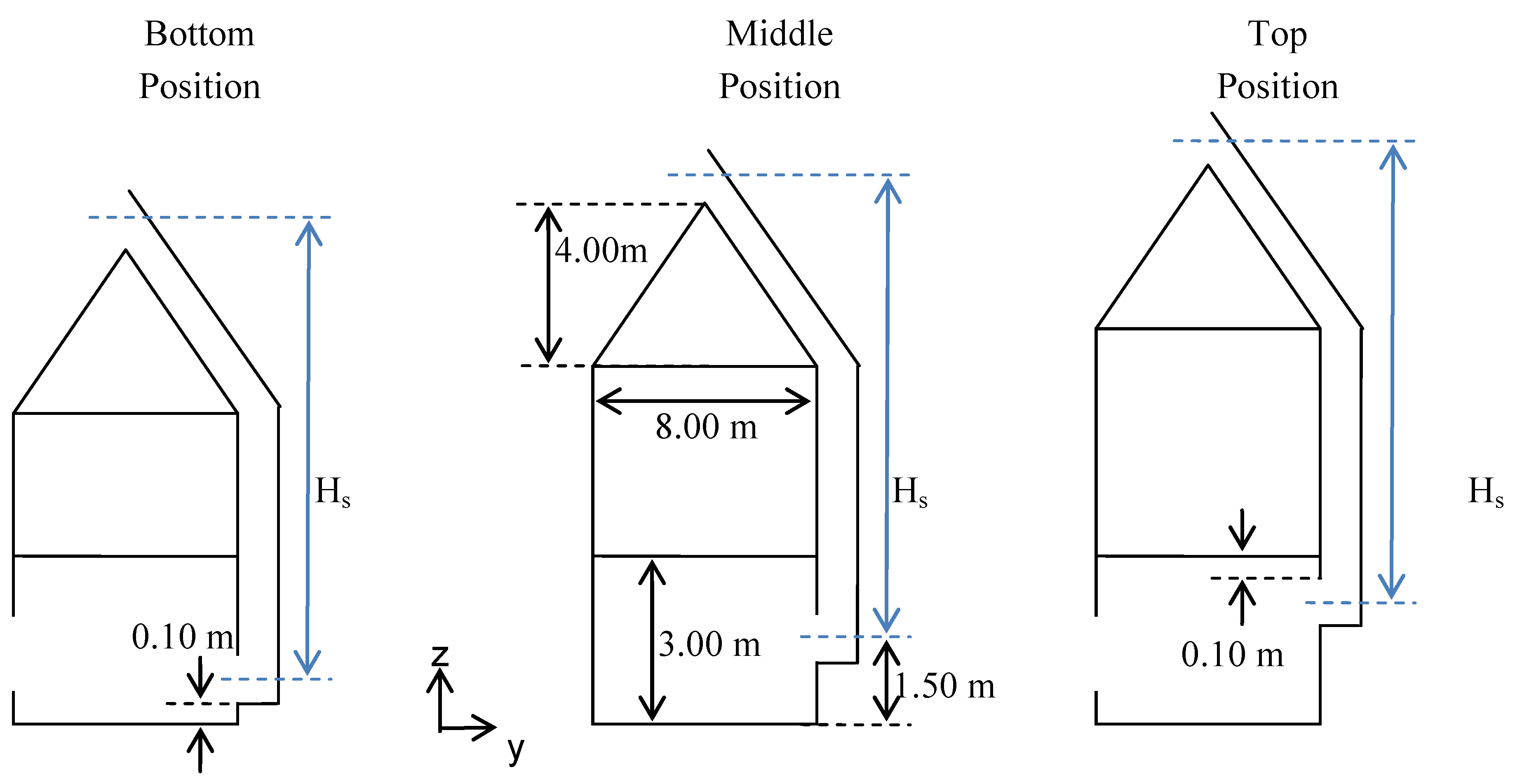 | Bottom (0.35 m) | Middle (1.50 m) | Top (2.65 m) | |