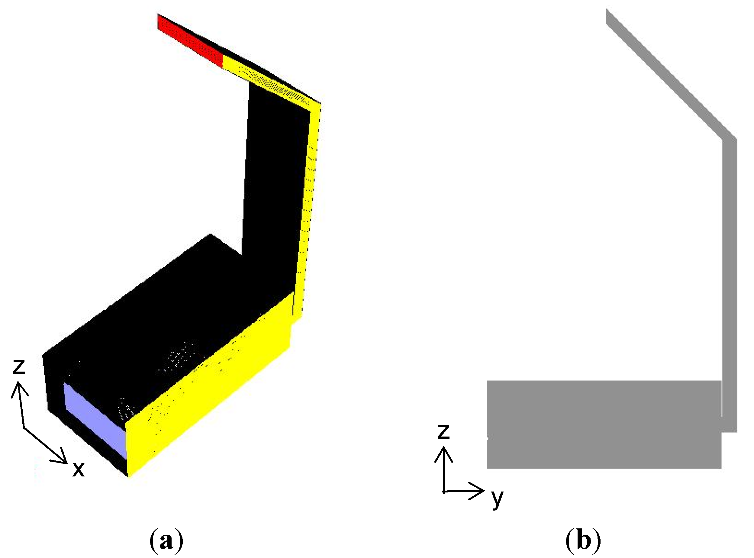 (a) Computational model in isometric view; (b) Computational model in mid-plane view.