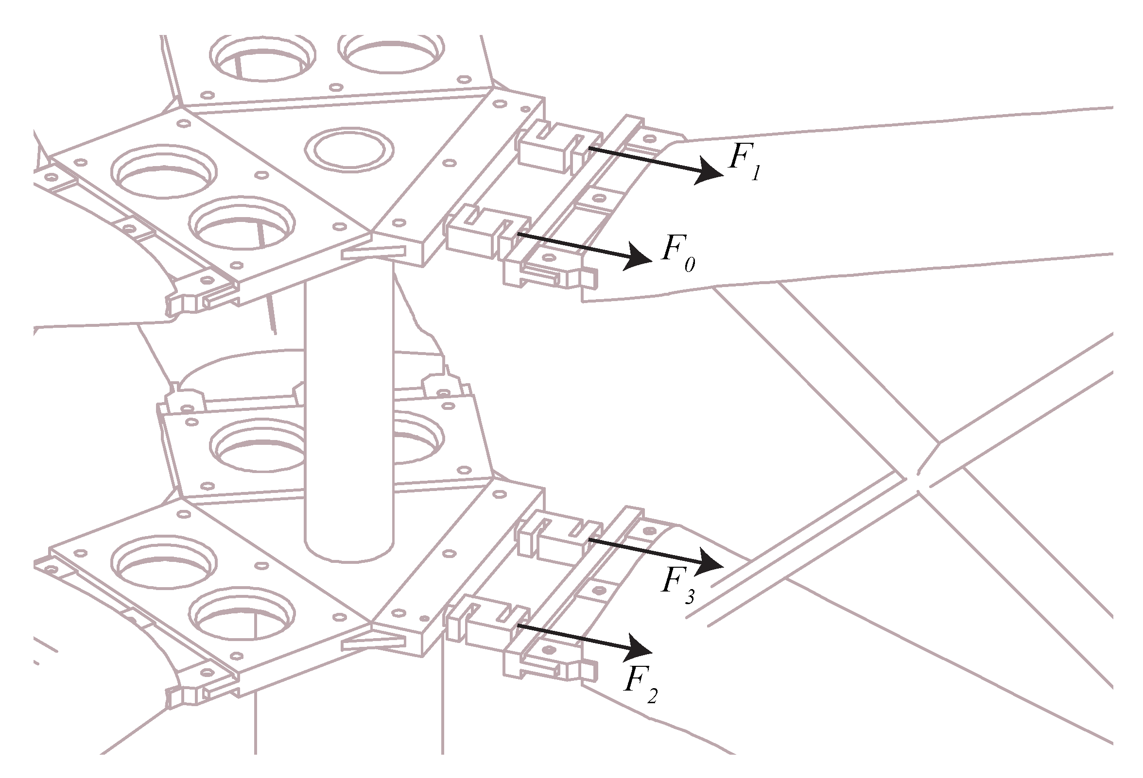 The assembly of the load cells. The notation of the measured forces.